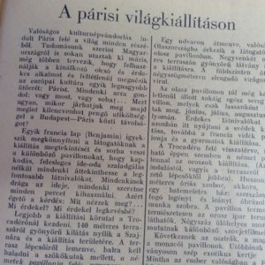 Emellett pedig egy cikket a párizsi világkiállításról.